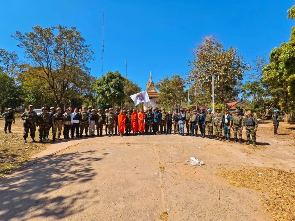 បន្ទាប់ពីមានការរំលោភបំពានយ៉ាងធ្ងន់ធ្ងរពីកងកម្លាំងយោធាថៃ ដែលបានប្រើប្រាស់អាវុធធុនធ្ងន់ផ្លោងចូលមកក្នុងភូមិសាស្ត្រទឹកដីកម្ពុជា ដែលបង្កឱ្យមានការខូចខាតហេដ្ឋារចនាសម្ព័ន្ធ ក៏ដូចជាផ្ទះសម្បែង និងទ្រព្យសម្បត្តិប្រជាពលរដ្ឋយ៉ាងដំណំ នៅព្រឹកថ្ងៃទី៨ ខែមករា ឆ្នាំ២០២៦នេះ ឯកឧត្តម មាន ចាន់យ៉ាដា អភិបាល នៃគណៈអភិបាលខេត្តឧត្តរមានជ័យ បានដឹកនាំក្រុមការងារចូលរួមជាមួយក្រុមអ្នកសង្កេតការណ៍អាស៊ាន (AOT) ដើម្បីពិនិត្យផលប៉ះពាល់ដែលទាហានថៃវាយប្រហារមកលើច្រកព្រំដែនអន្តរជាតិអូរស្មាច់ សង្កាត់អូរស្មាច់ ក្រុងសំរោង ខេត្តឧត្ដរមានជ័យ។