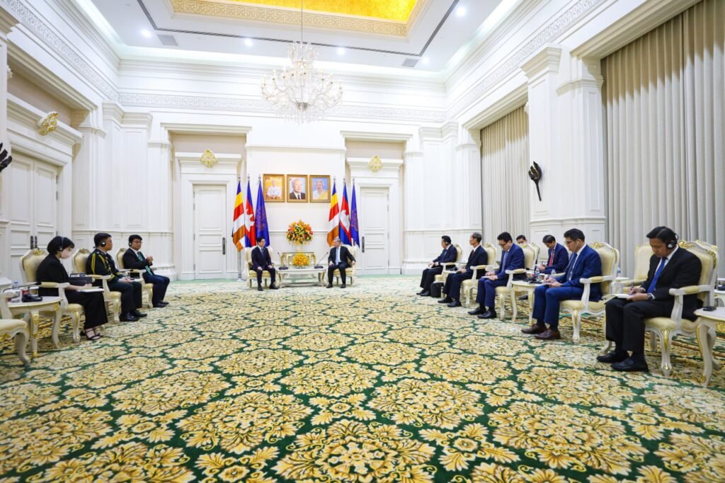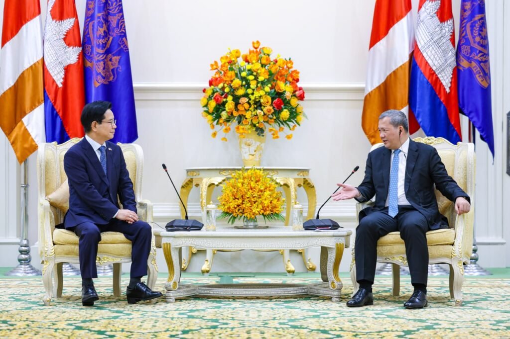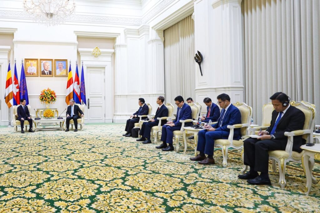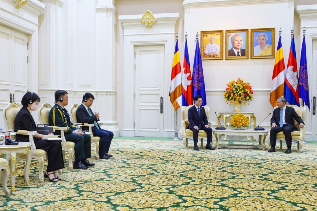 (ភ្នំពេញ)៖ នៅព្រឹកថ្ងៃអង្គារ ទី១៧ ខែមីនា ឆ្នាំ២០២៦នេះ សម្តេចមហាបវរធិបតី ហ៊ុន ម៉ាណែត នាយករដ្ឋមន្ត្រីកម្ពុជា បានអនុញ្ញាតឱ្យលោក KIM Changyong ឯកអគ្គរដ្ឋទូតកូរ៉េខាងត្បូង ប្រចាំនៅកម្ពុជា ចូលជួបសម្តែងការគួរសម និងពិភាក្សាការងារ នៅវិមានសន្តិភាព៕